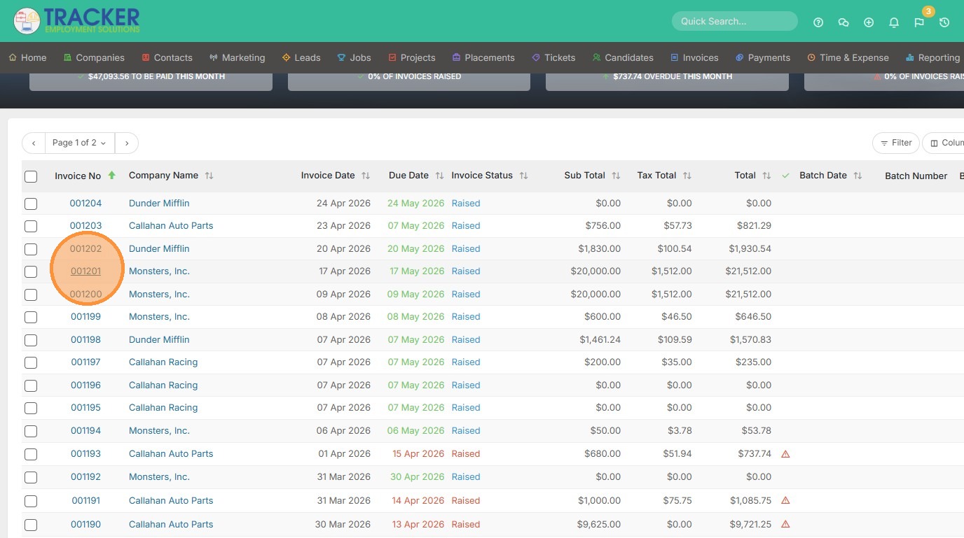 1. To add new ad hoc items to an existing invoice, open that invoice.