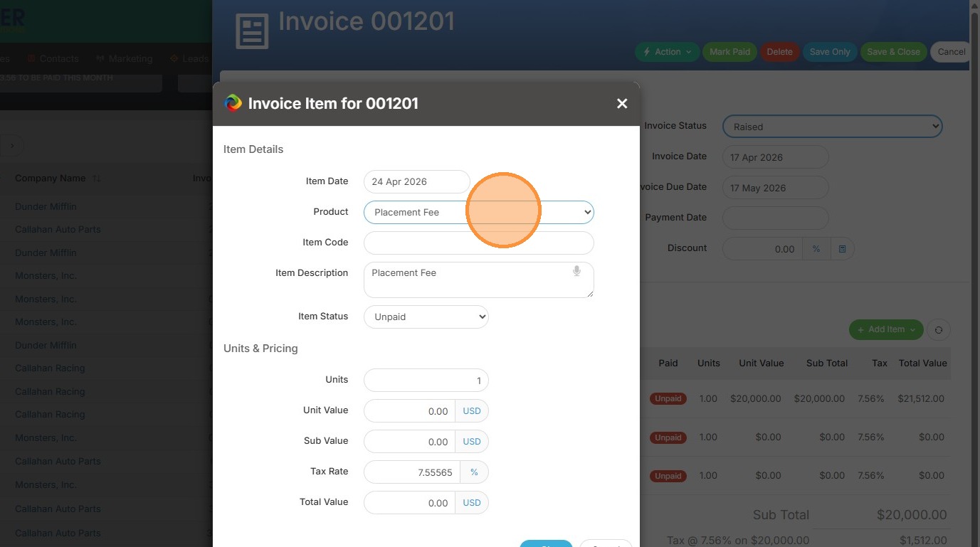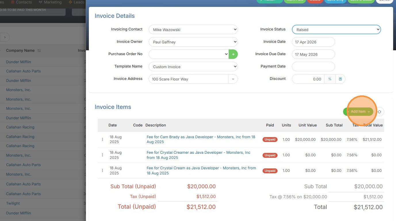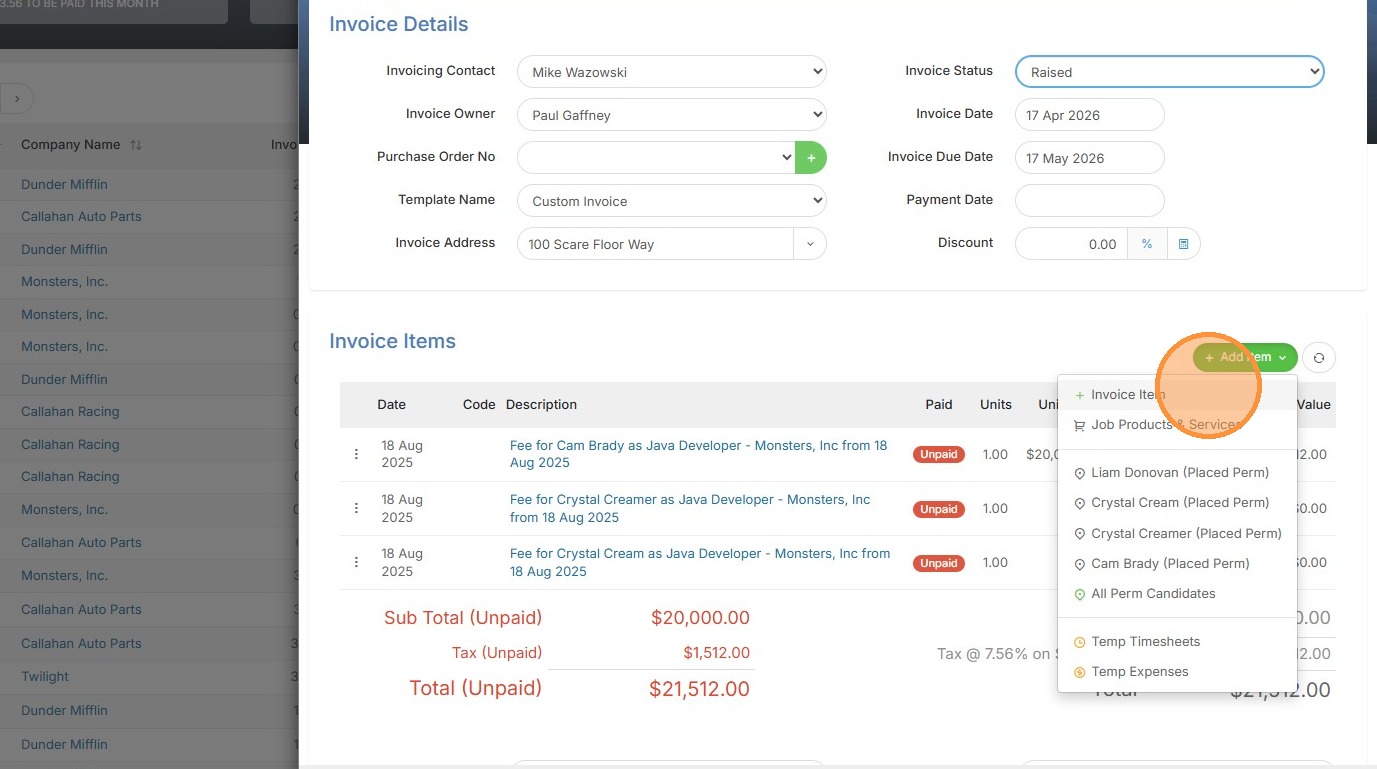 3. Click "Invoice Item"