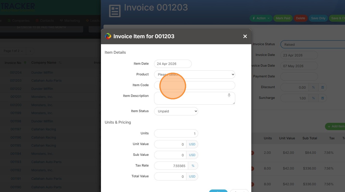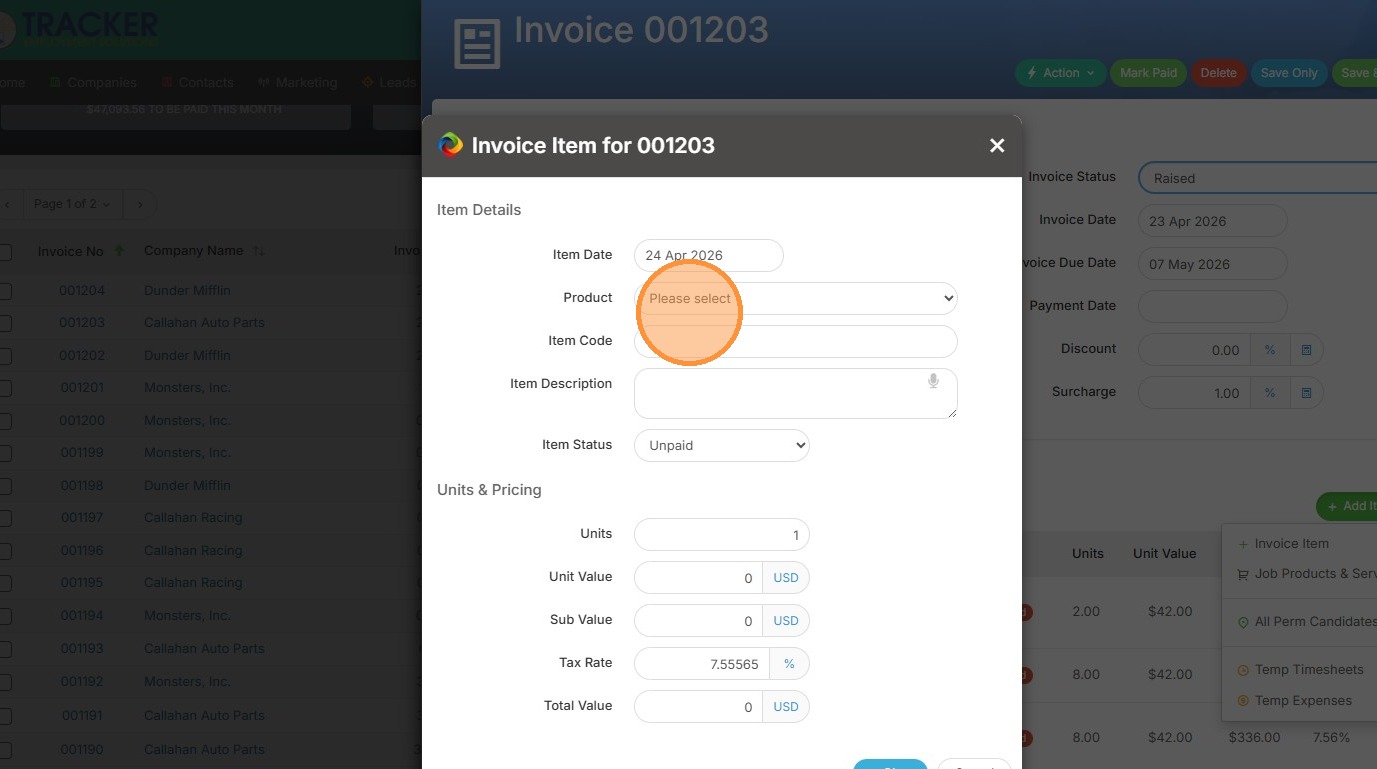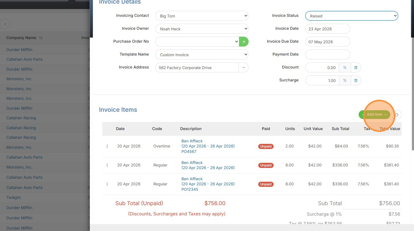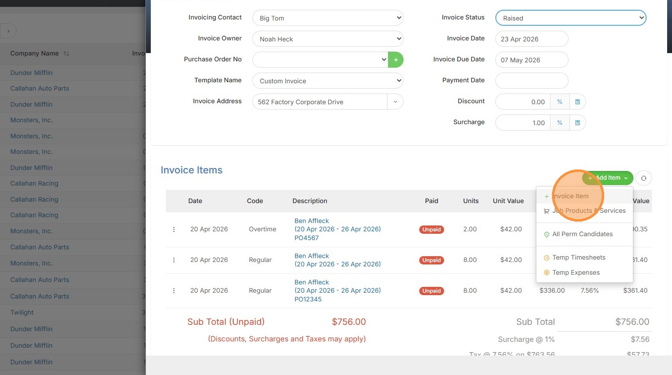 3. Click "Invoice Item"