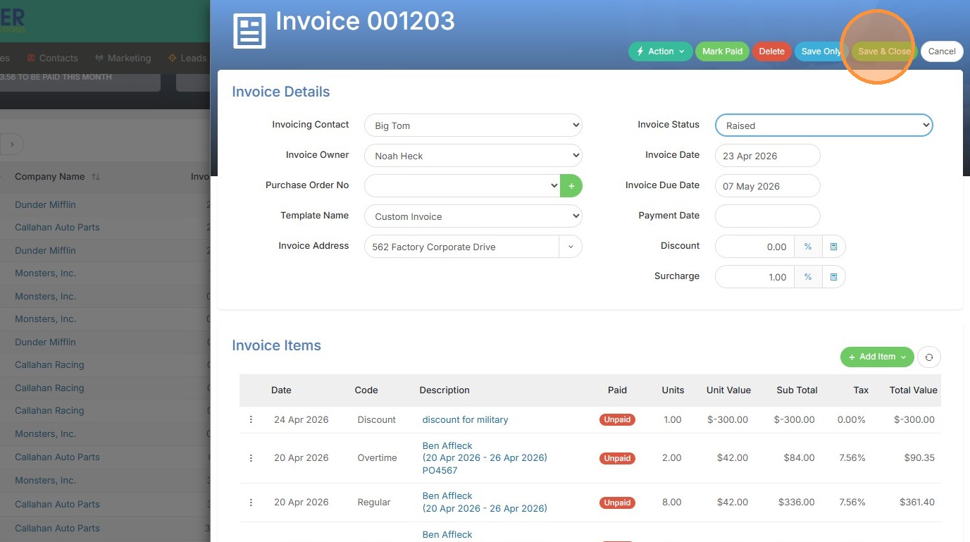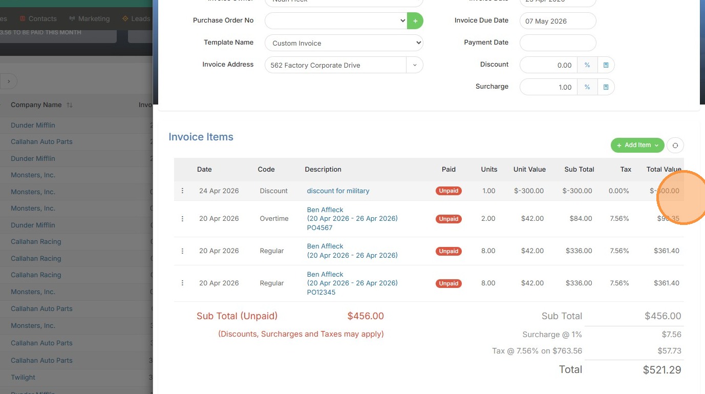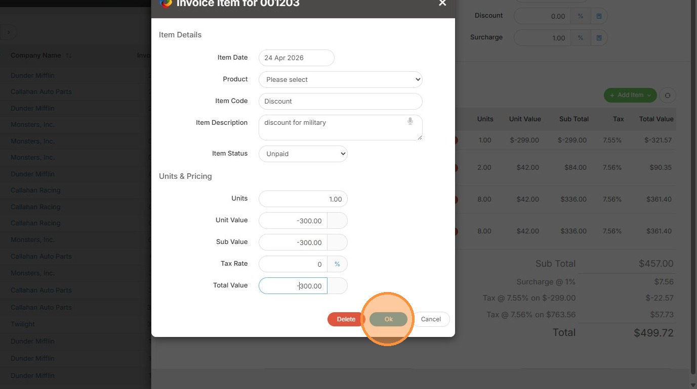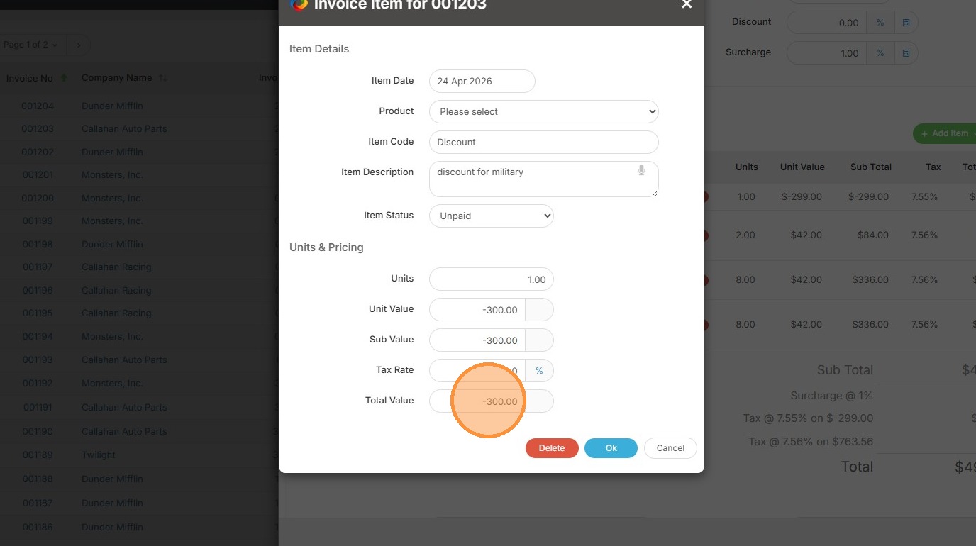 1. To add a discount to an invoice, open that invoice.