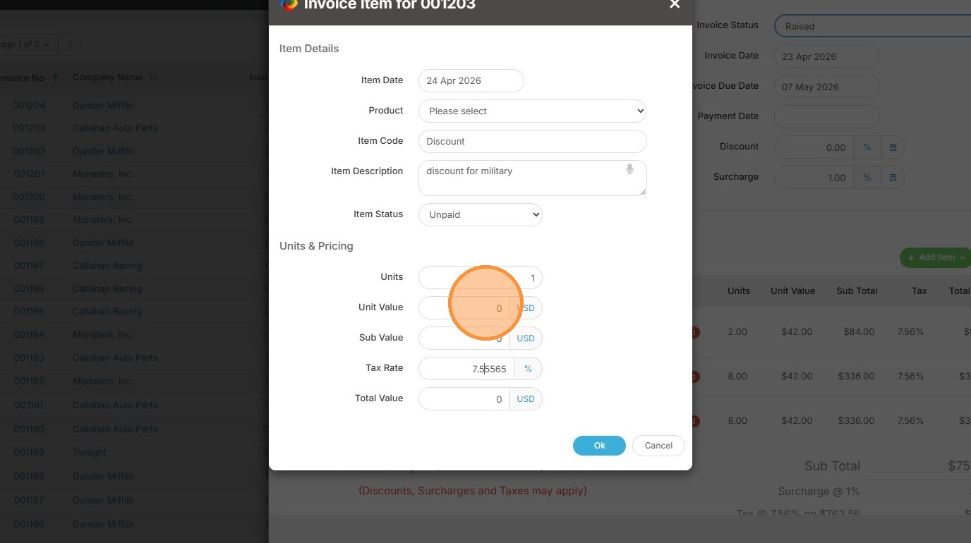 6. When inputting the Unit Value, make sure to add in a negative number.