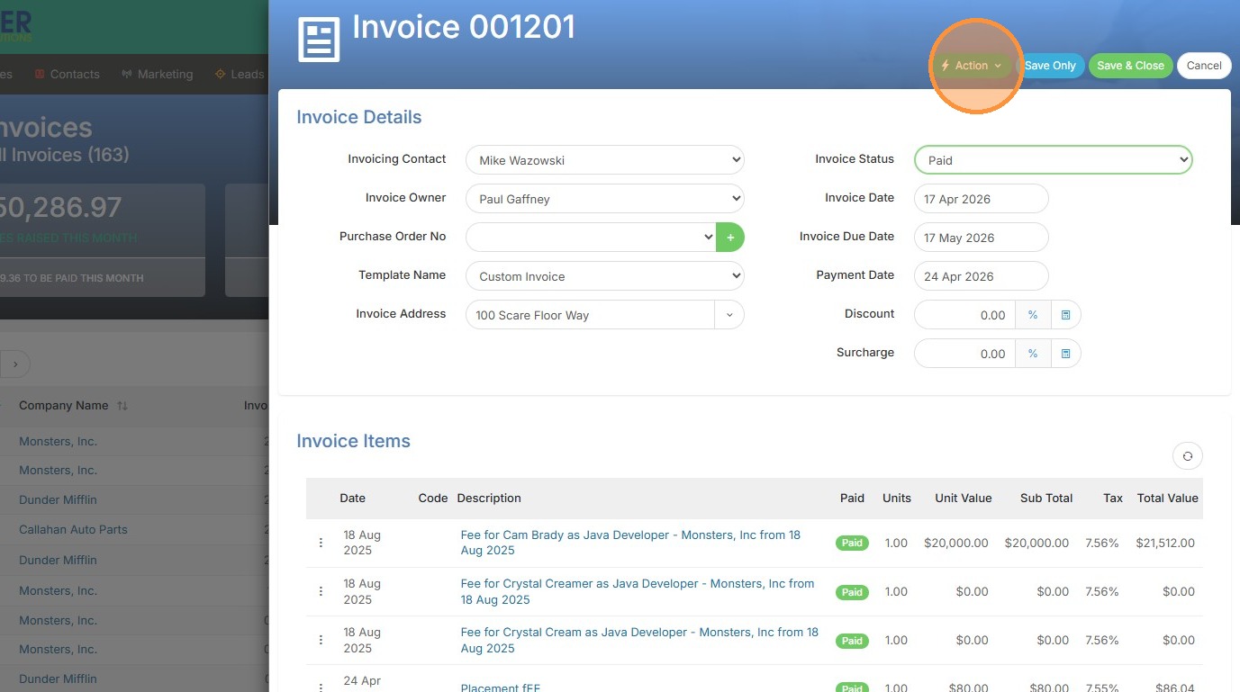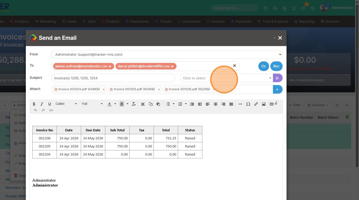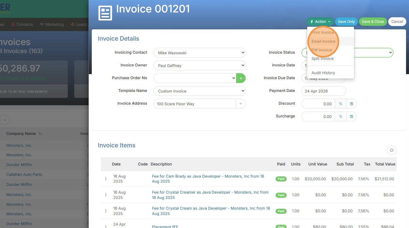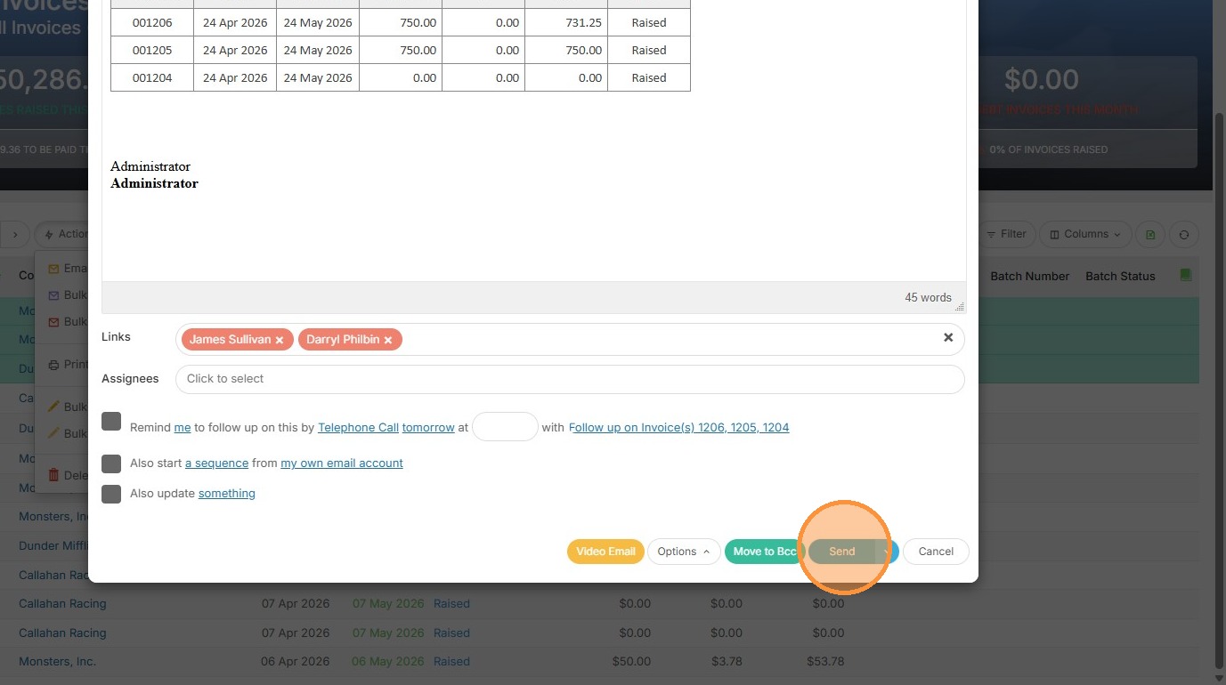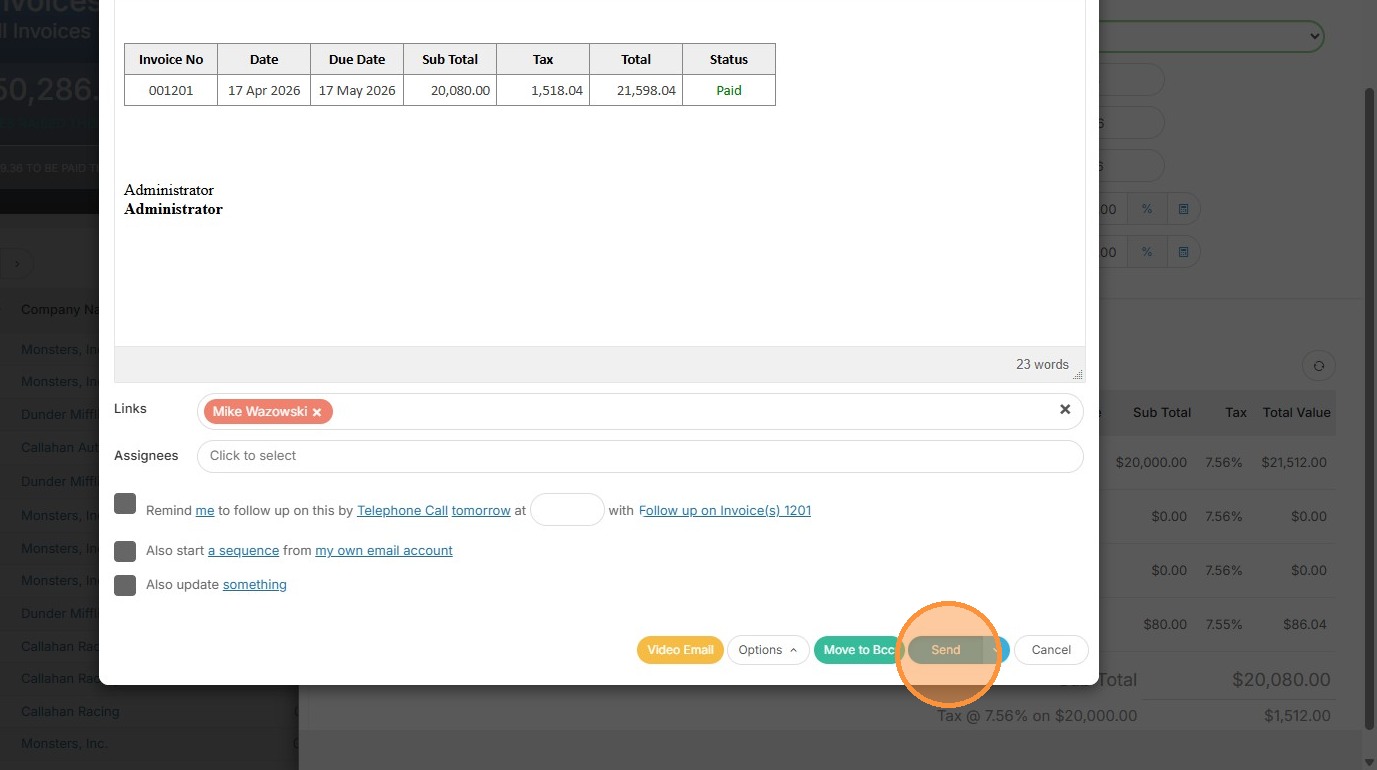 8. Click "Email Invoice"