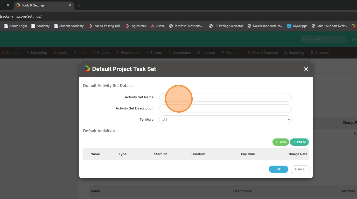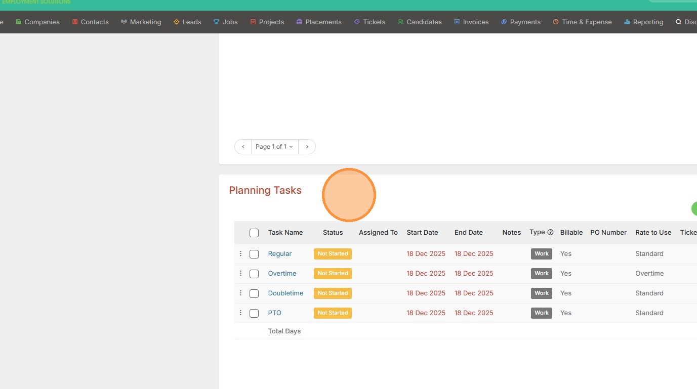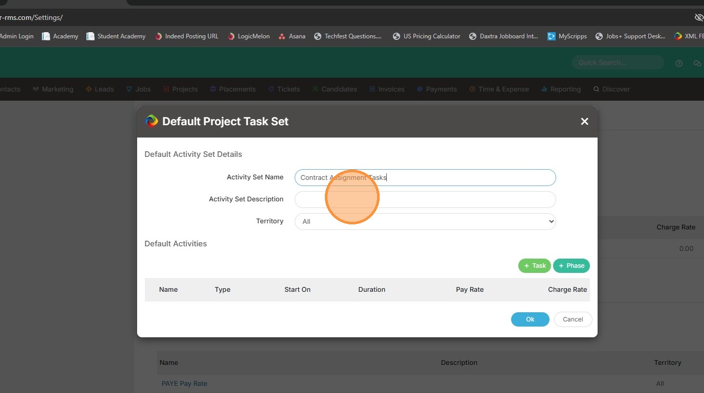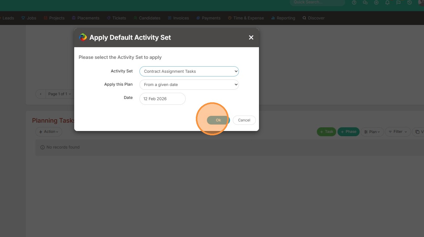 1. Within assignments, or projects, you can apply a default task set. This is done under the Planning Tasks section within the project.