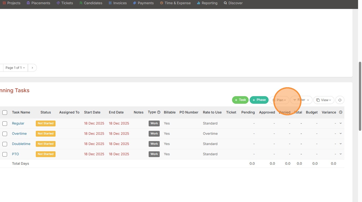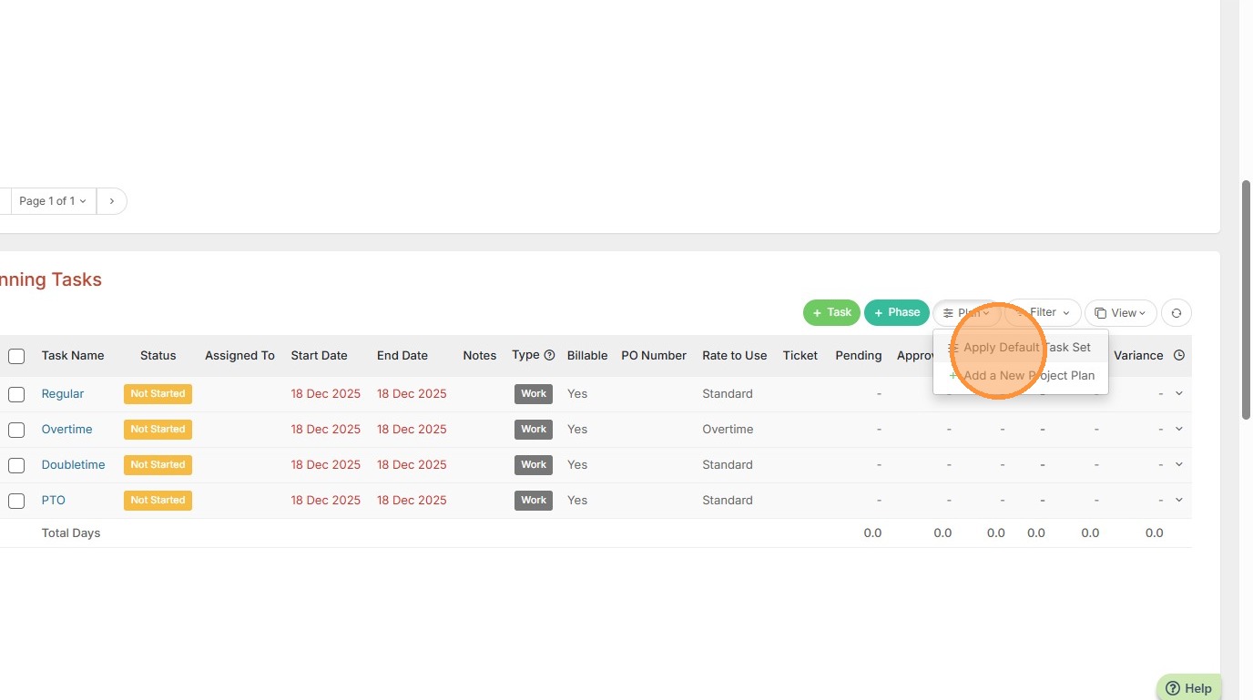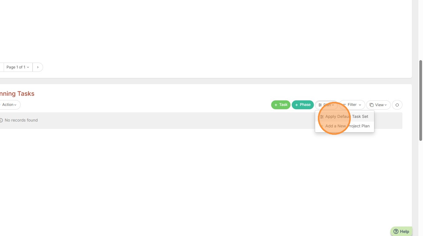 2. You can apply a default task set by clicking on the Plan button.