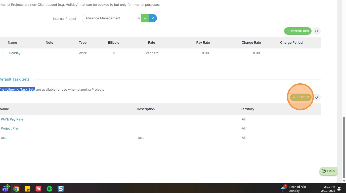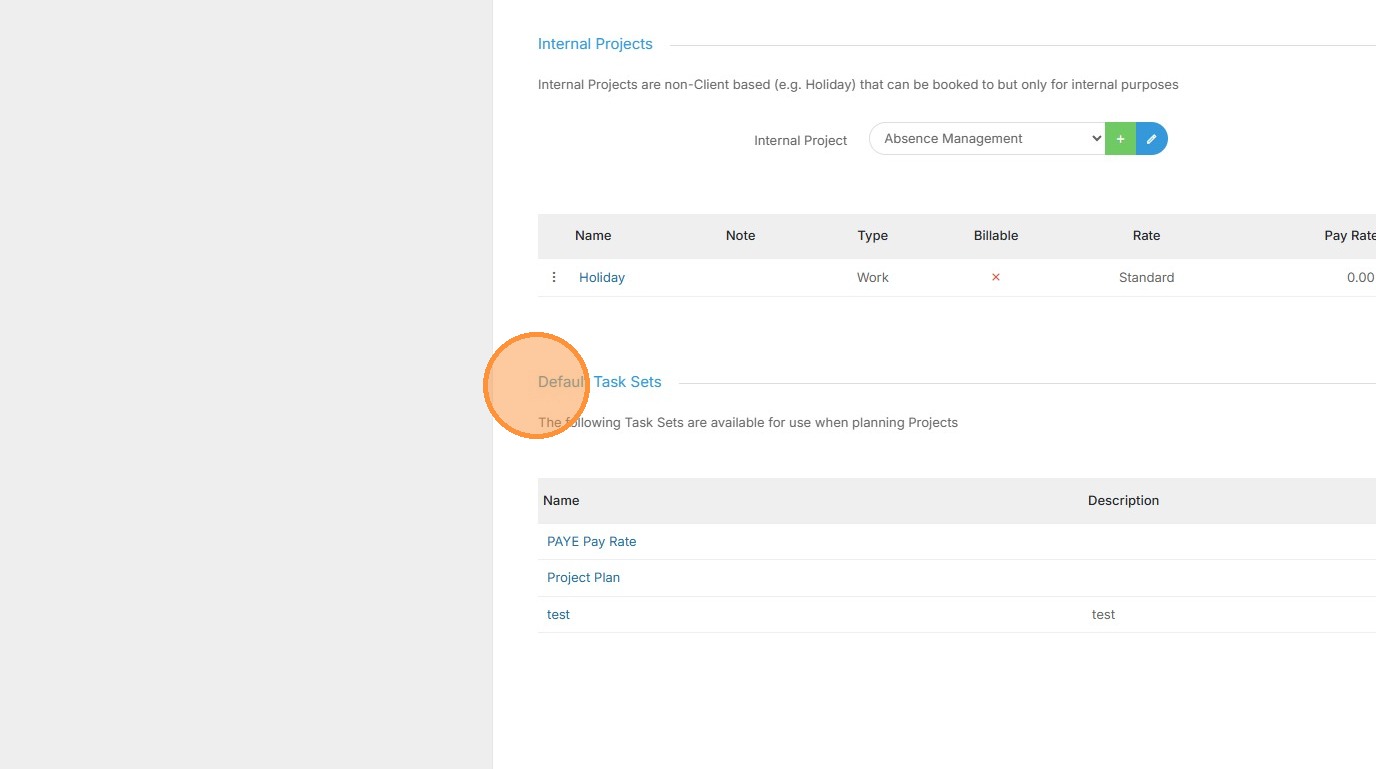 7. Scroll down to the Default Task Sets section.