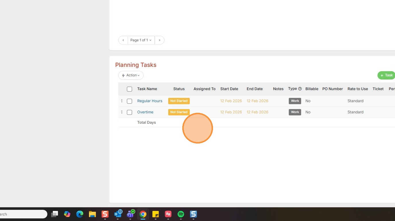 29. Then you will see the tasks applied. This default planning tasks will be available in all projects moving forward if needed.