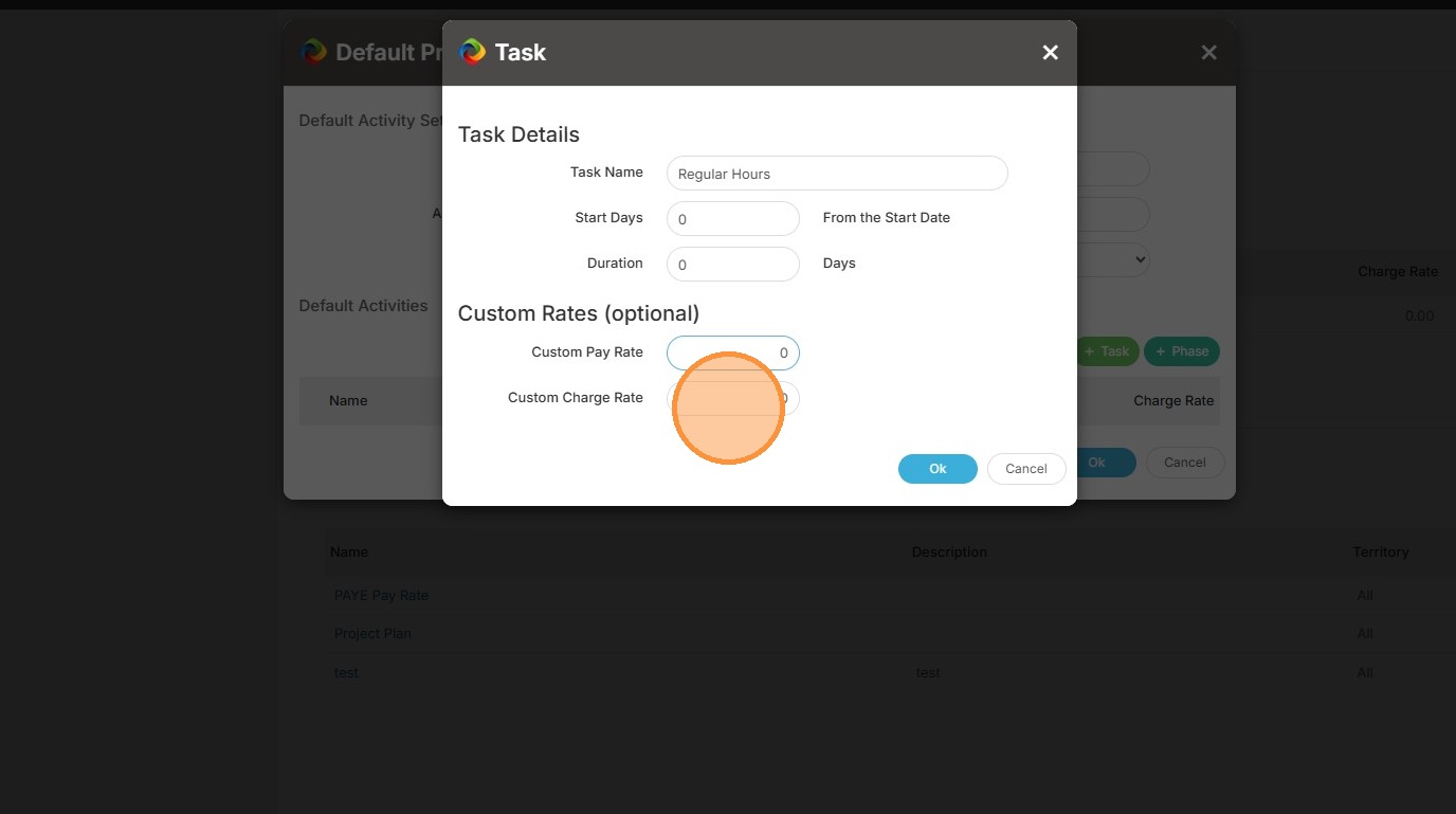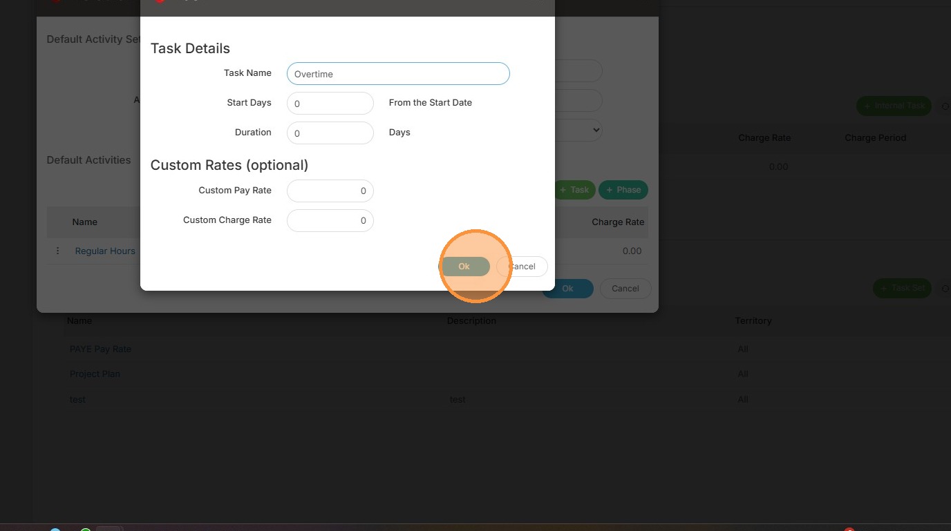 13. Then add the details of the task, such as the name. In this example, I'm going to add Regular Hours.