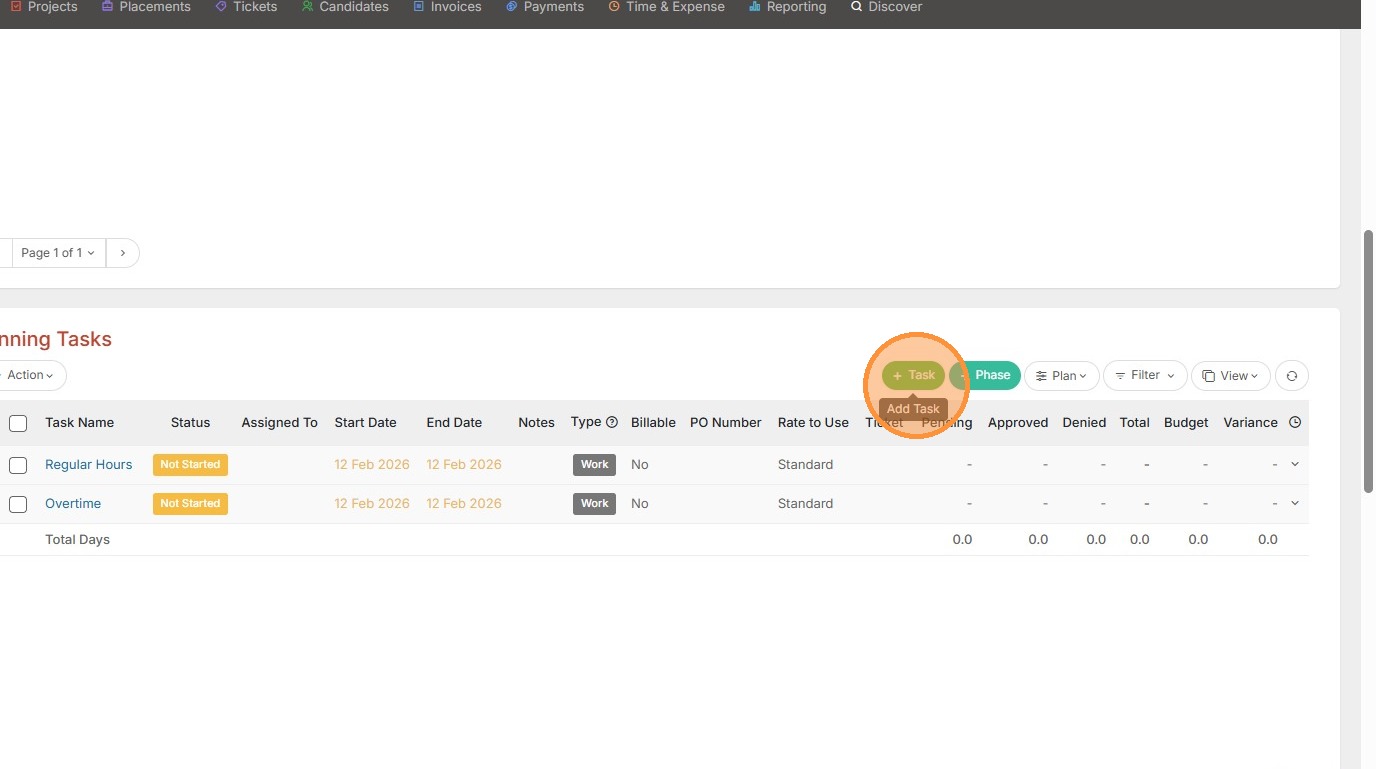 2. Scroll down to Planning Tasks, and click the green Task button.