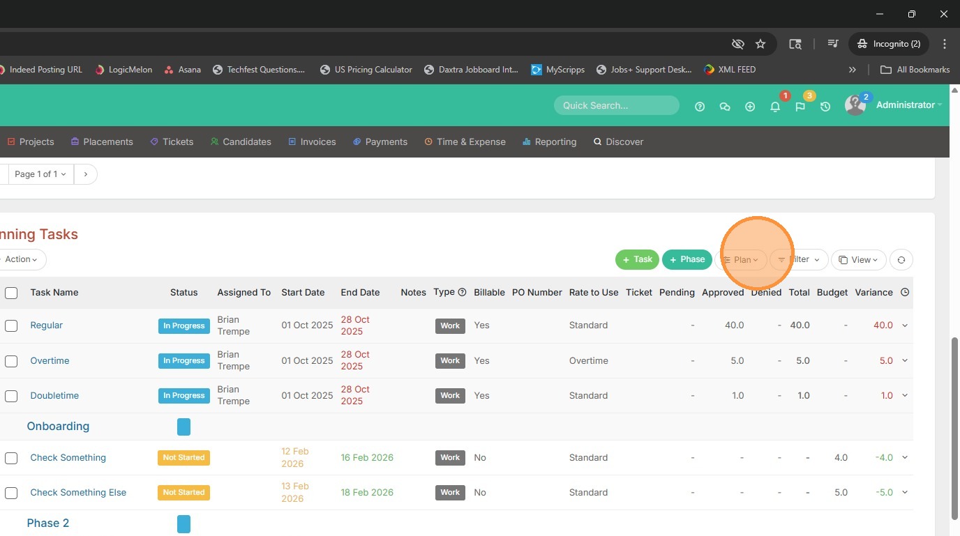 2. From within Planning Tasks, click Plan.
