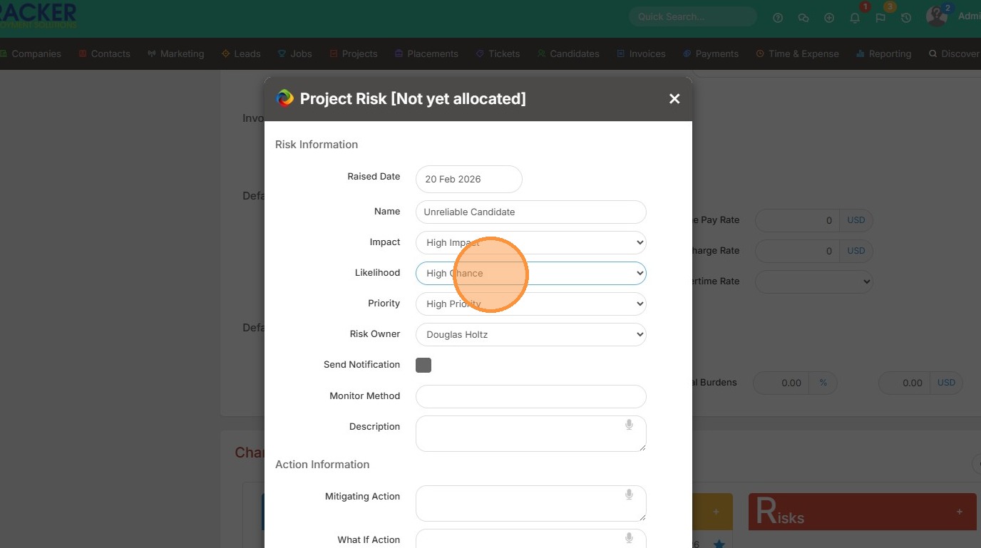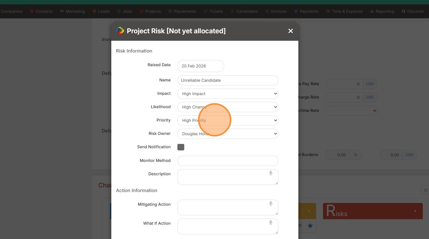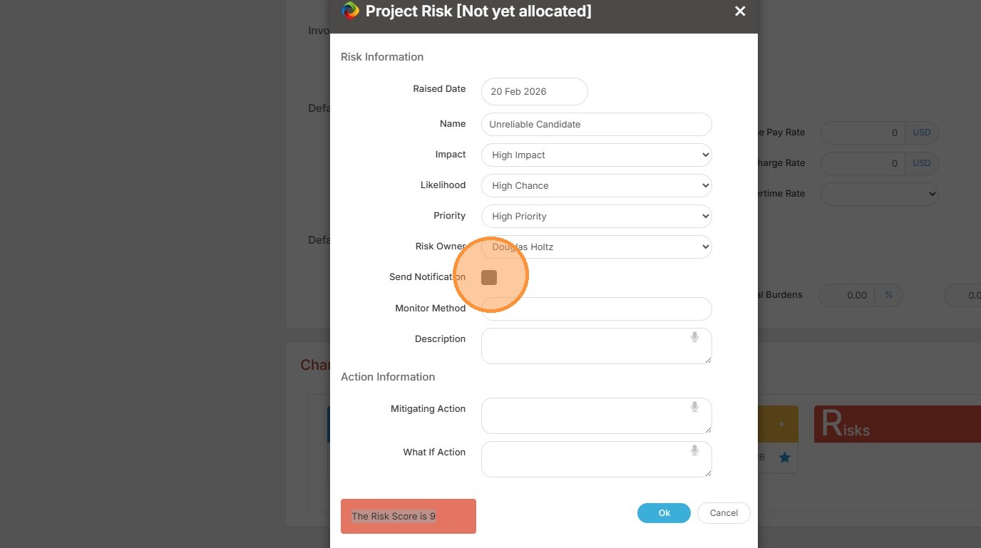 1. Within Projects/Assignments you can add Risks, if necessary.