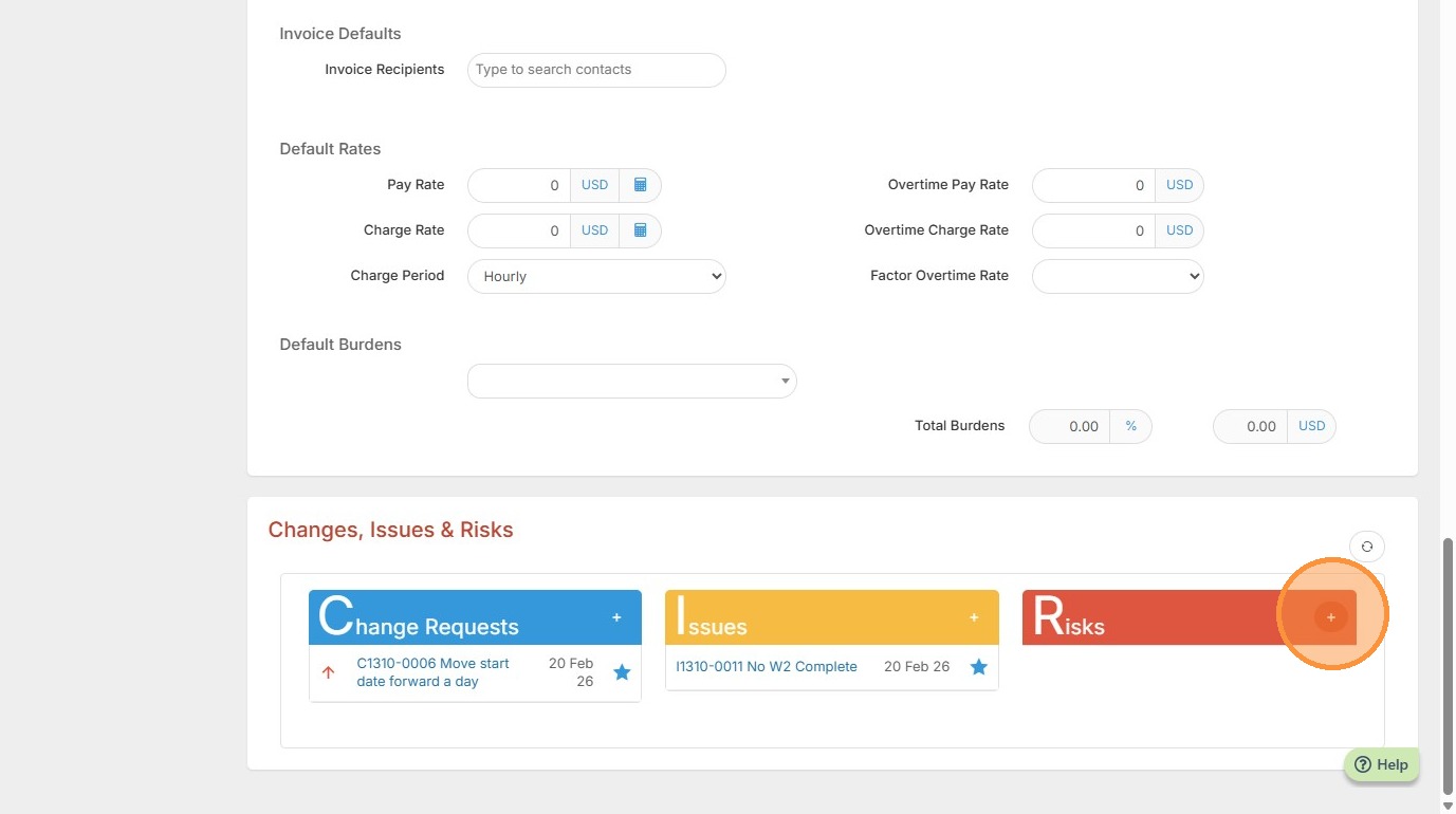 2. Click the Red + button to add a Risk.