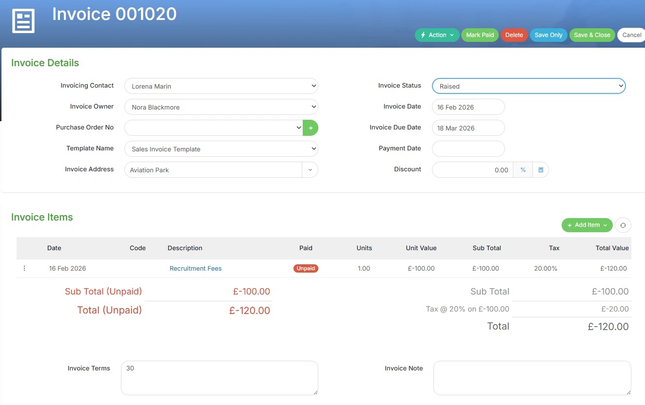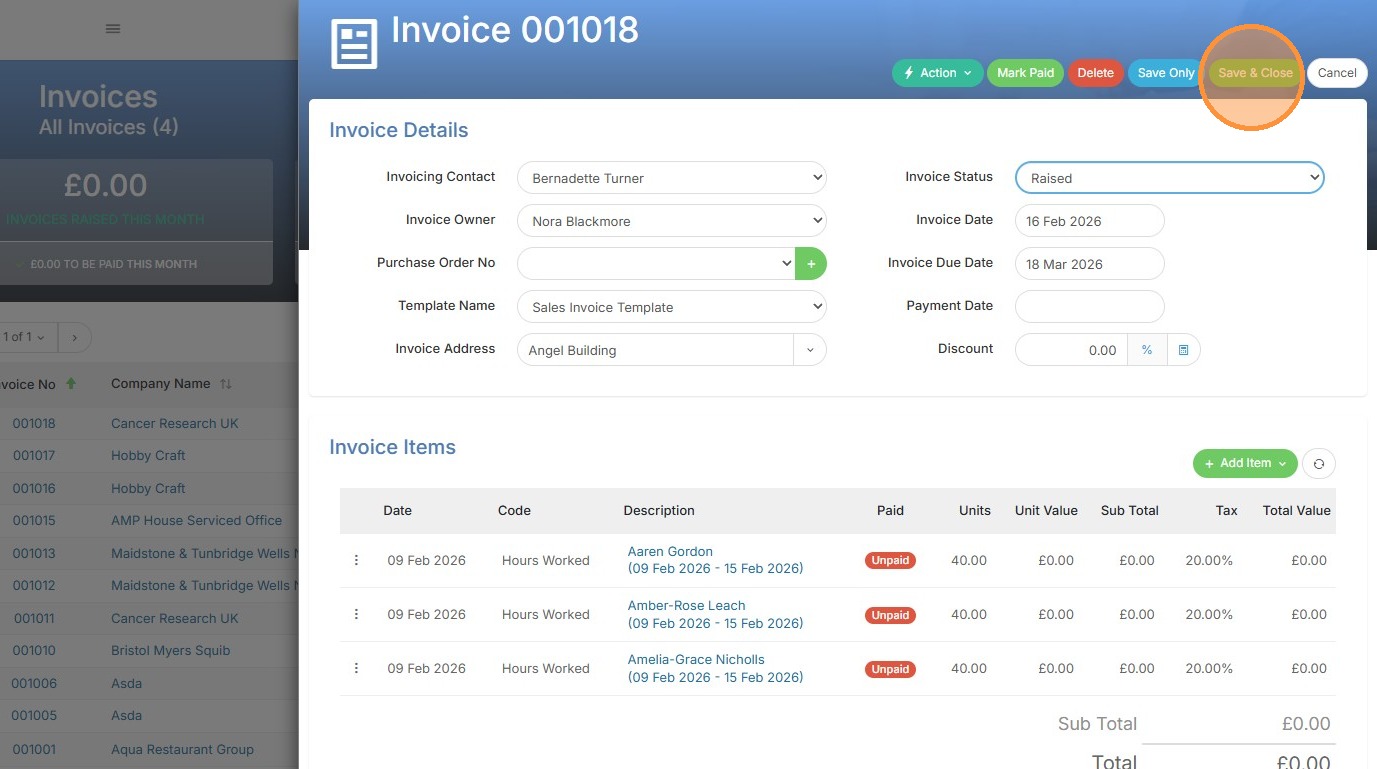 6. You'll be taken back to the Invoice to click Save and Close.