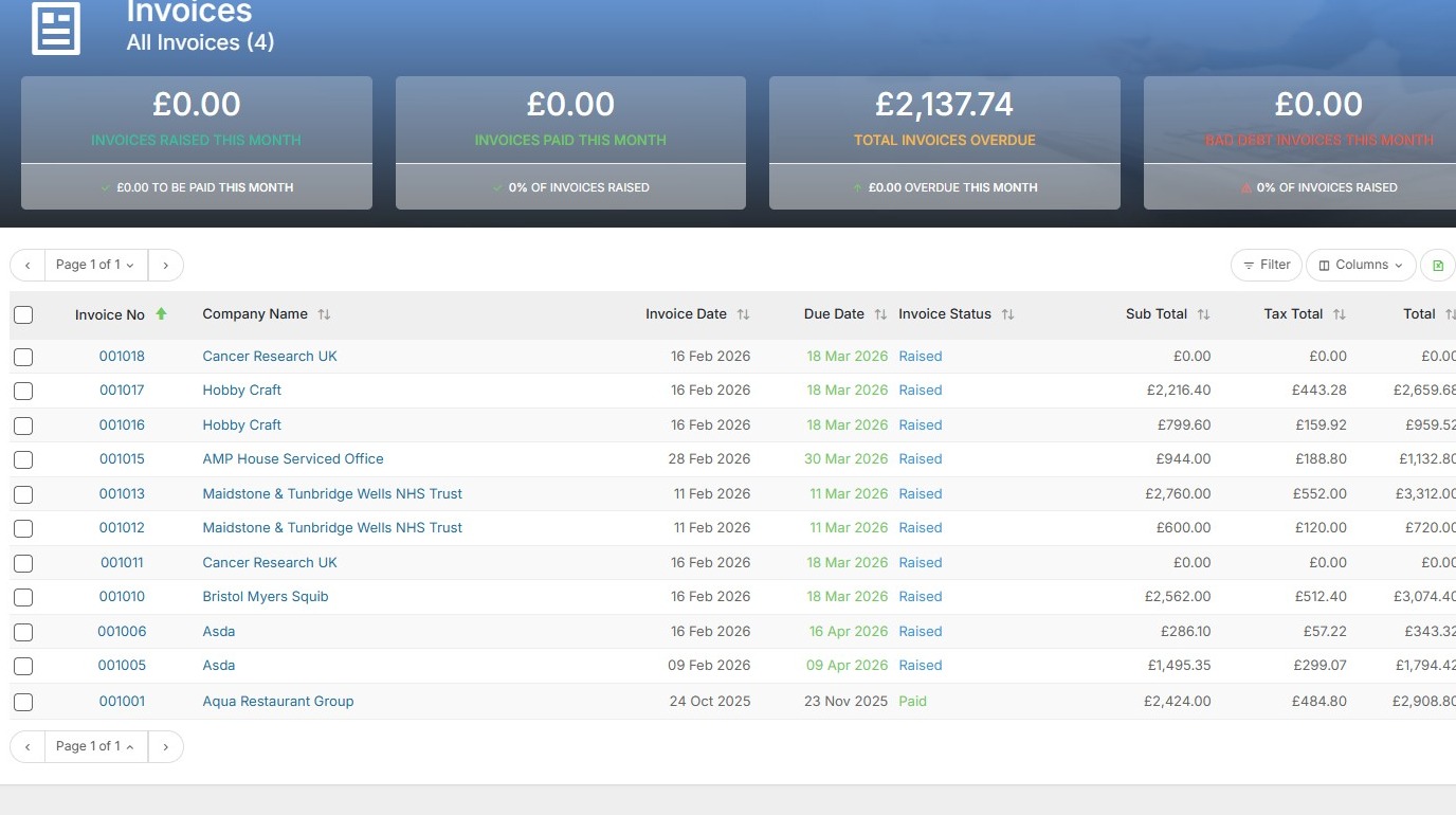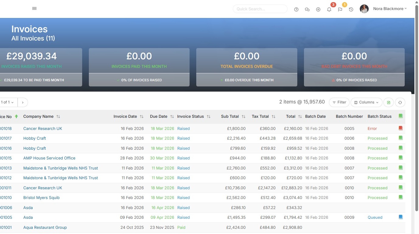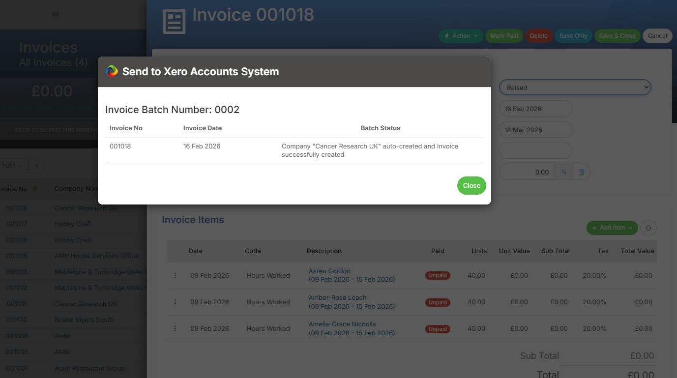 13. Invoices will instantly appear within Xero with the same details as Tracker and if the options for auto-creation are set to Yes then the companies and items will also have been created.