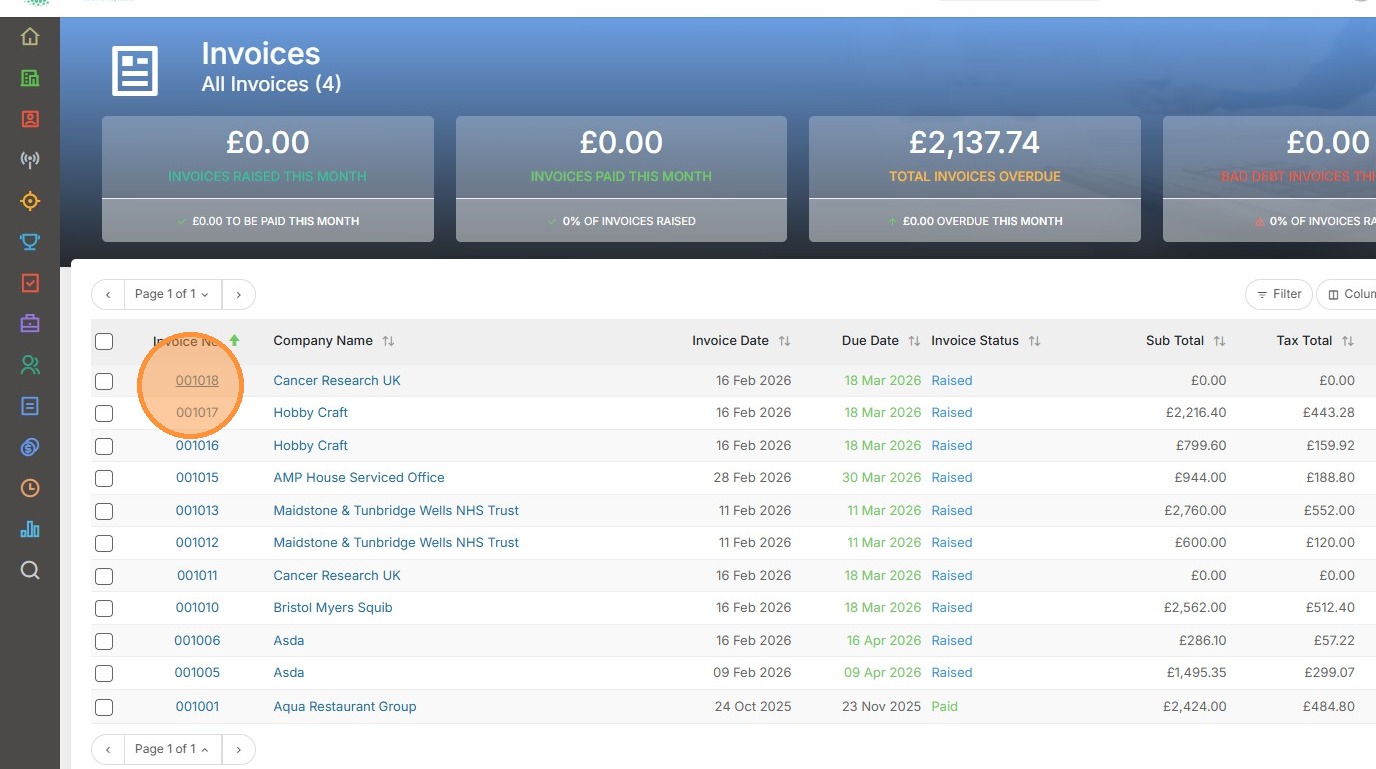 2. We can open the individual invoice by clicking on the Invoice Number.