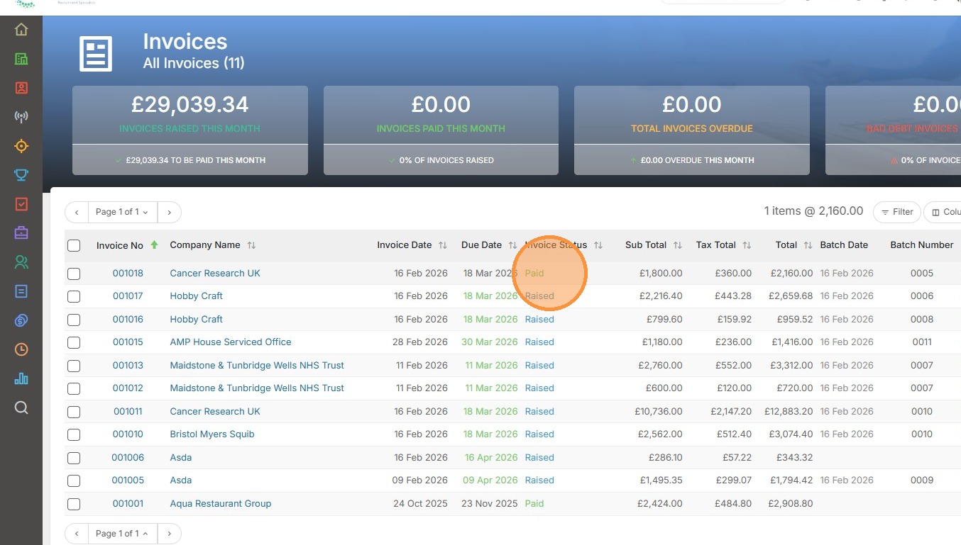 17. Here we see this invoice has been updated to "Paid".