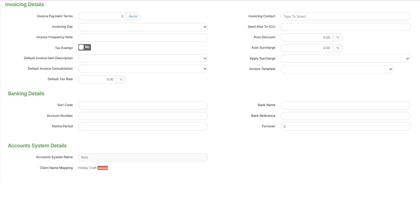 Here you will see the details of the Accounts System and the linked record which will be automatically linked for new records created in Xero by Tracker