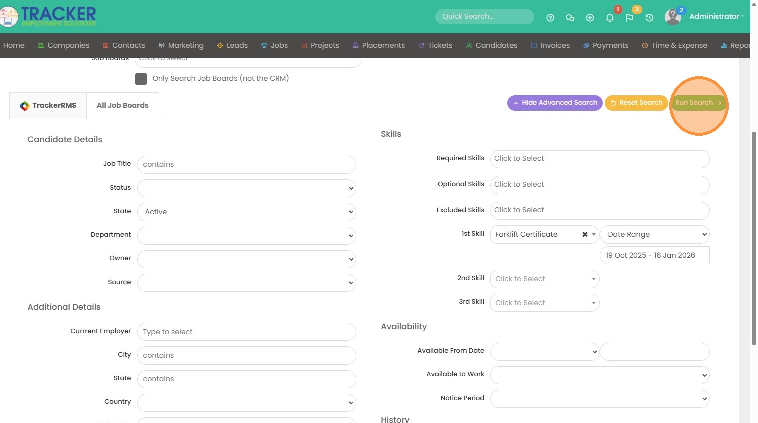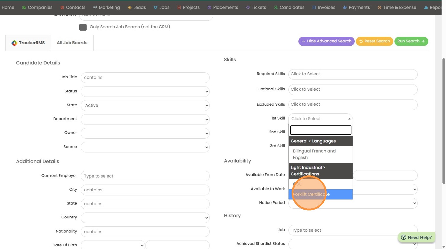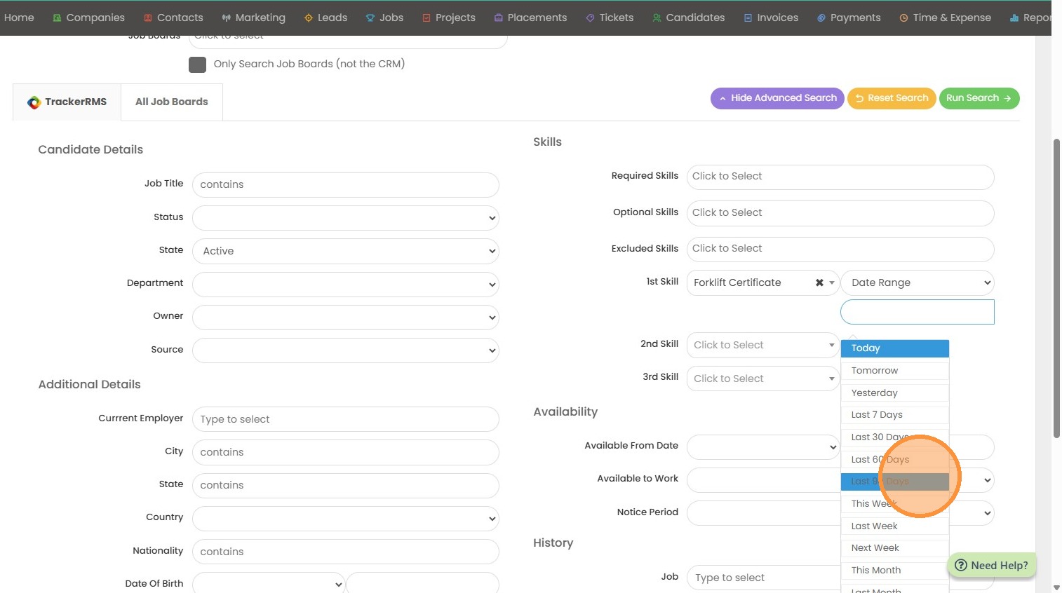 5. In this example I'm looking for candidates with a Forklift Certification completed in the last 90 days.
