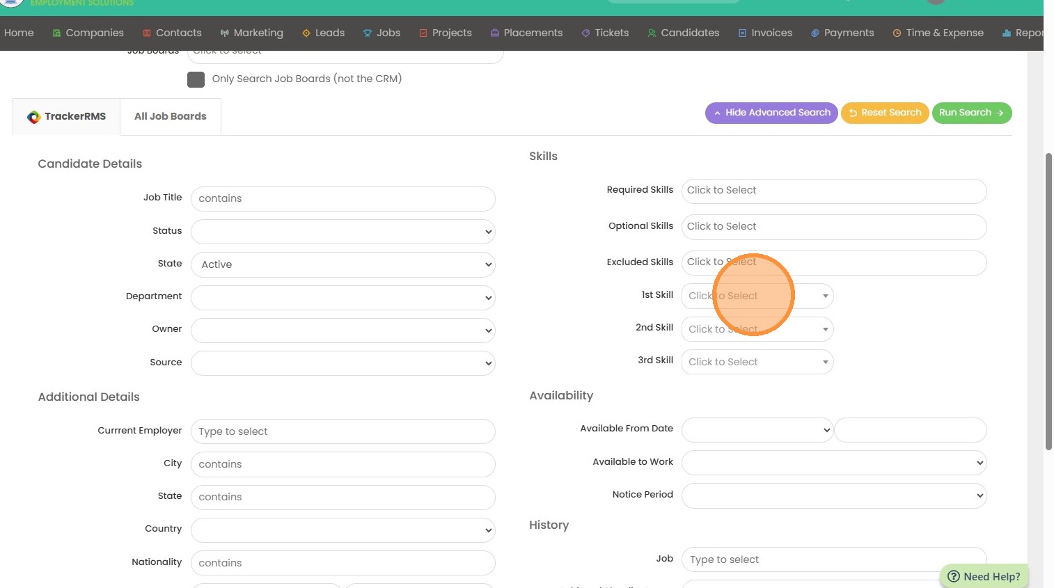 2. Click into the 1st Skill area dropdown.